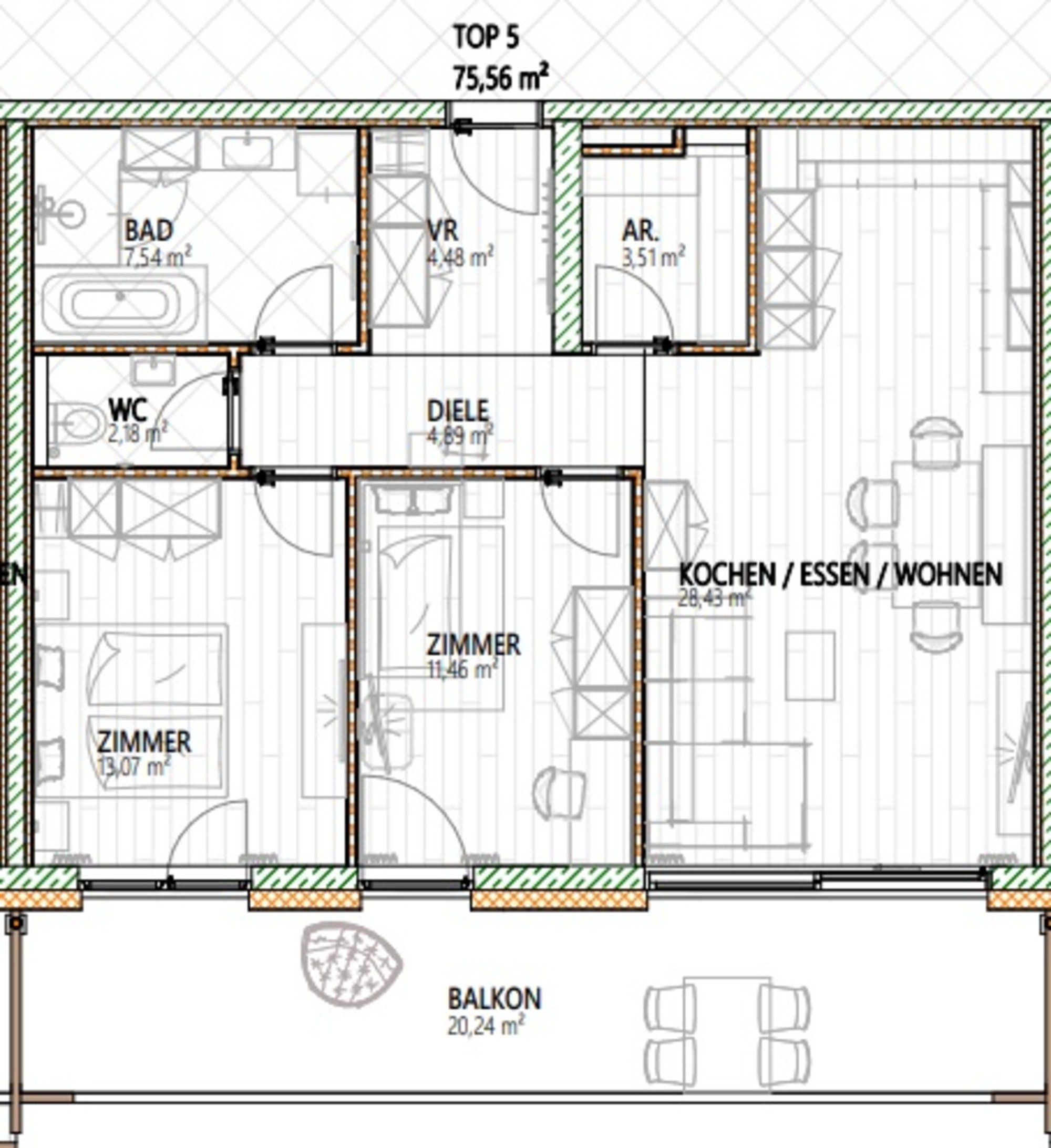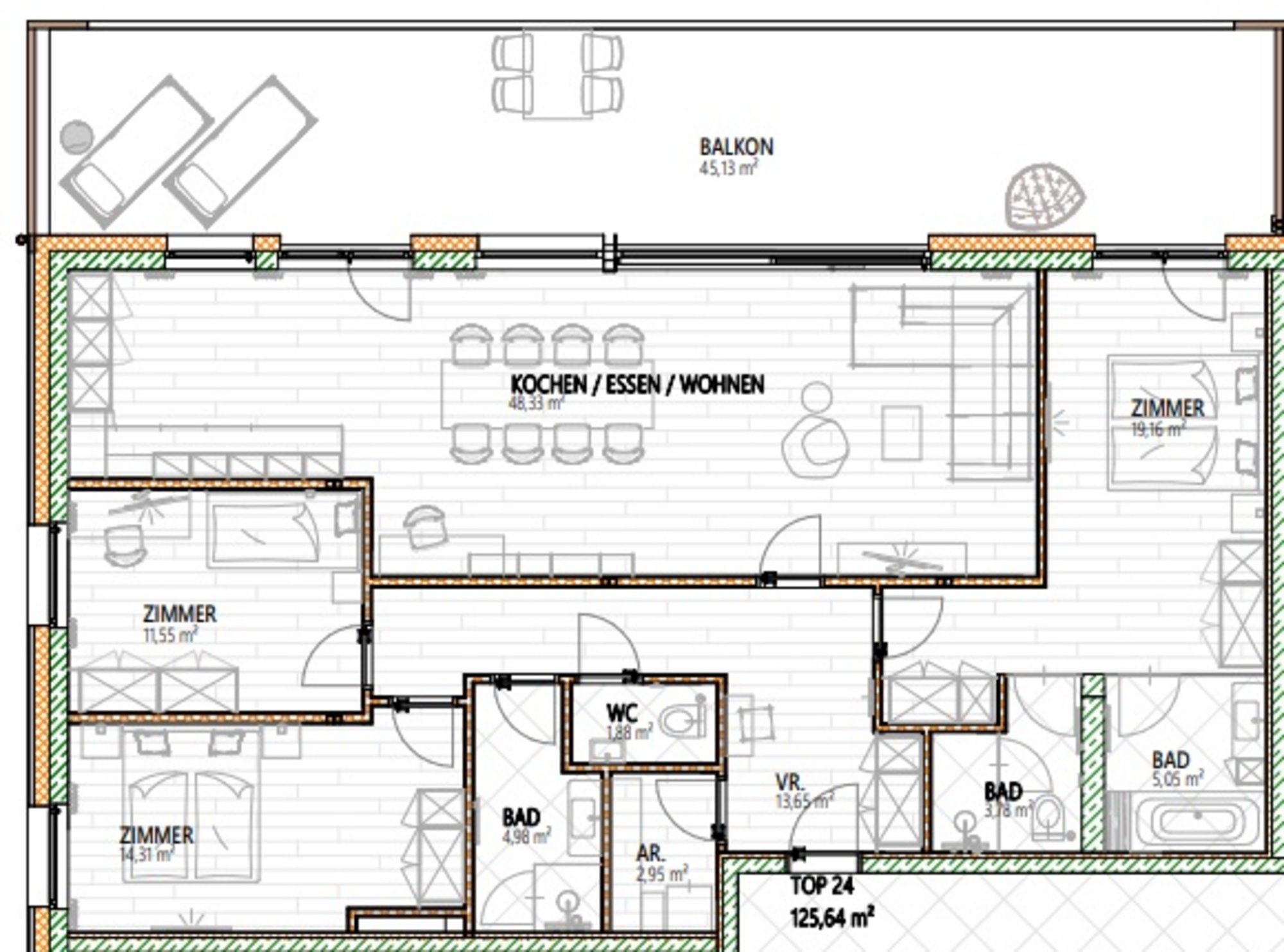 Exposé anfordernBei der Einrichtung der Wohnungen wurde einerseites der Fokus auf große Fenster- und Glaselemente gelegt, andererseits wurde in den Wohnräumen das Bauelement Holz integriert, um eine gemütliche und modern interpretierte rustikale Wohnumgebung zu schaffen. Ein sehr durchdachtes Raum- sowie ein nachhaltiges Energiekonzept machen die Anlage Rossberg einzigartig. Der Blick schweift aus den Innenräumen ins Freie, sodaß gerade auch in den Sommermonaten Balkon- und Terrasse als zusätzlicher Wohnraum wahrgenommen werden. Mit 24 Wohneinheiten ist die Anlage sehr überschaubar.