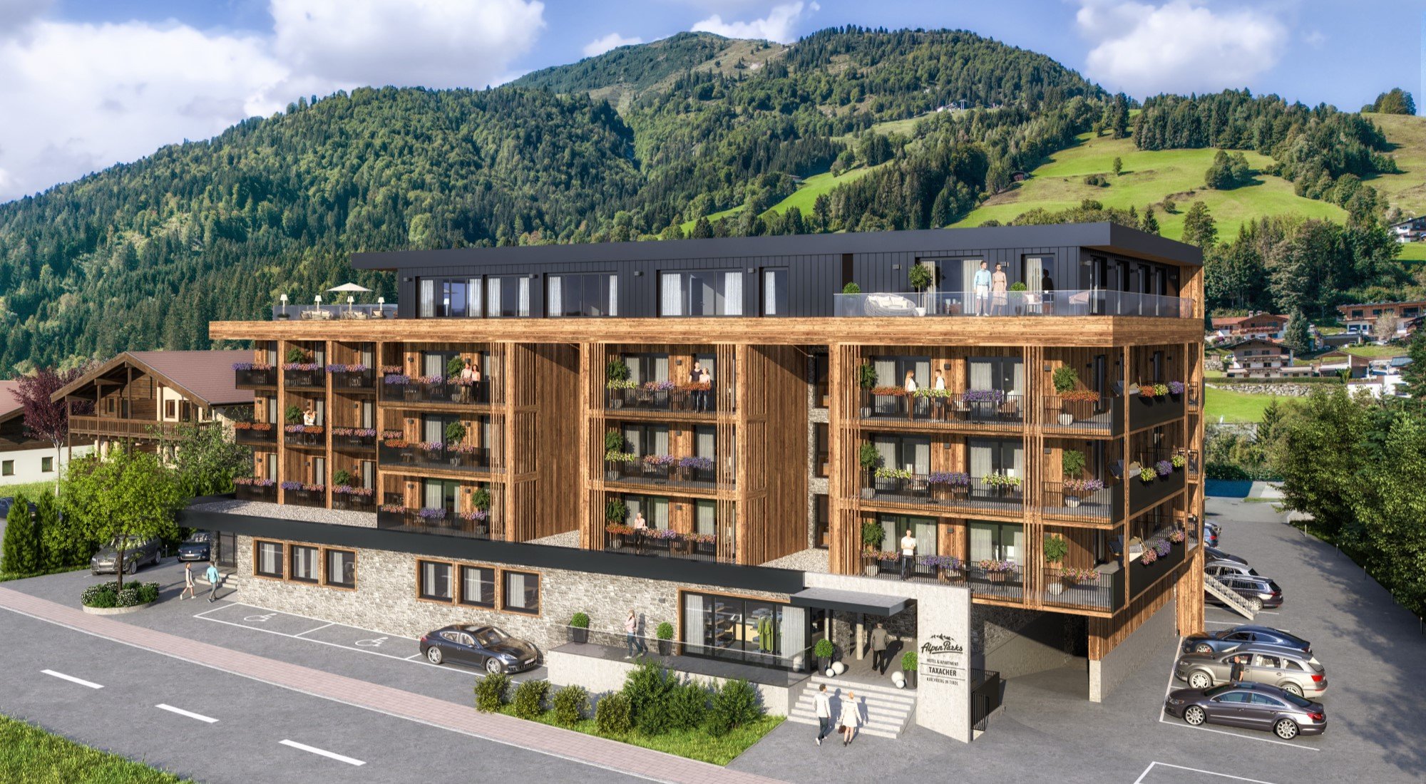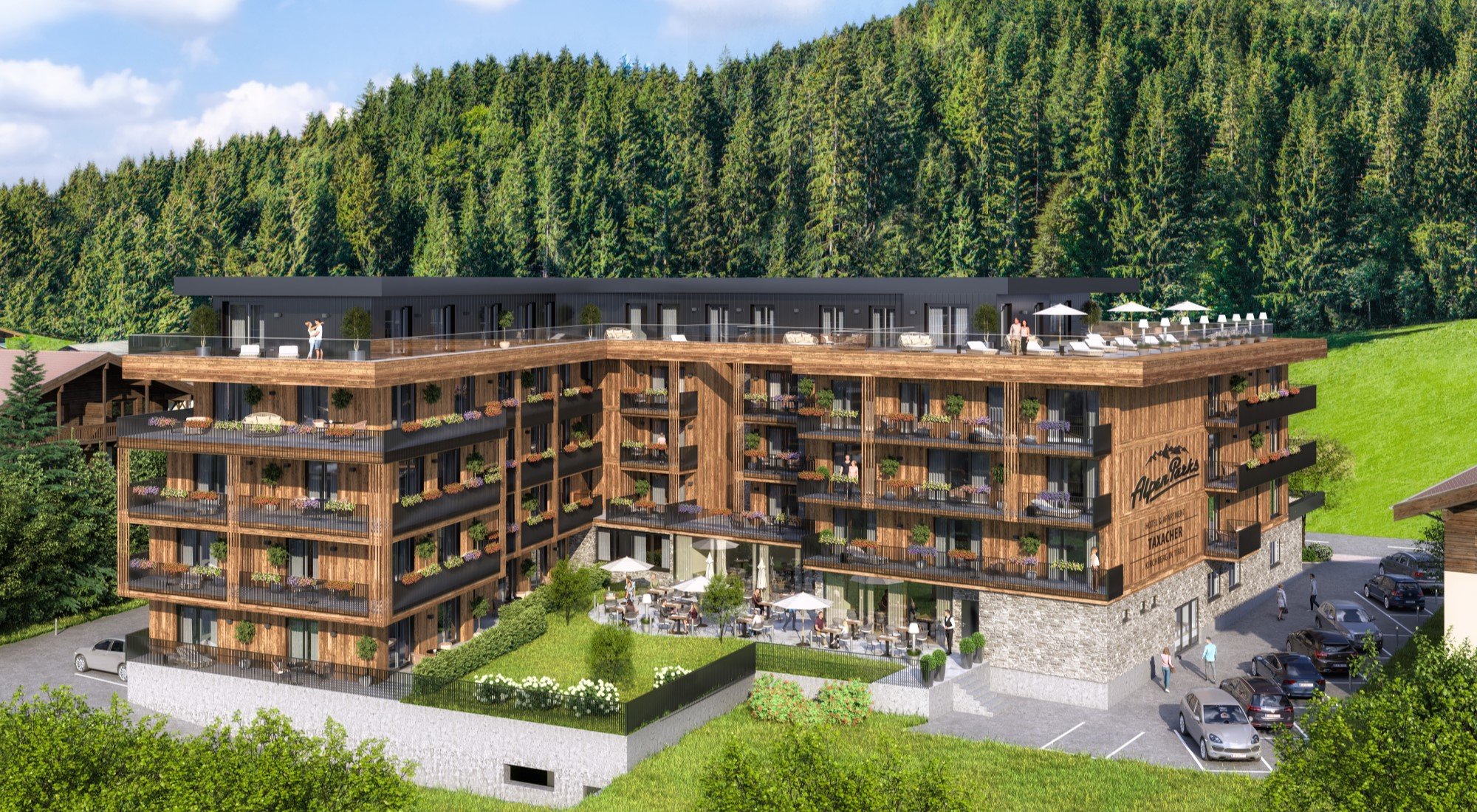 Der Baustart für das Projekt AlpenParks Taxacher in Kirchberg erfolgt im Sommer 2023, die Fertigstellung und Übergabe fand planmäßig im Dezember 2024 statt. Das AlpenParks Taxacher punktet durch seine außergewöhnliche Lage in einer der begehrtesten Urlaubsregionen der Alpen, mitten in den Kitzbühler Alpen in Österreich.