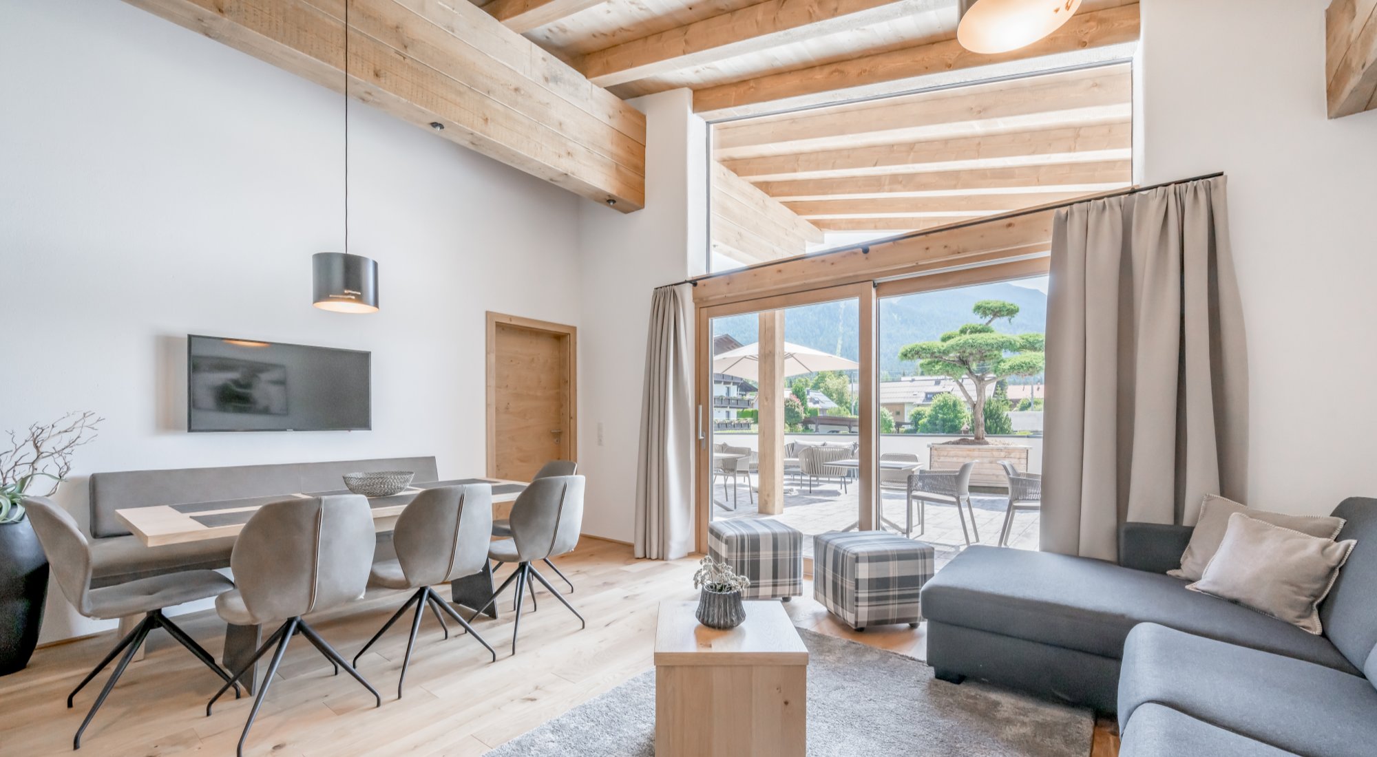 Die Größen der Ferienwohnungen variieren zwischen 32 m² und 100 m². Die 37 Wohnungen zur touristischen Nutzung sind auf 5 verschiedenen Ebenen verteilt, es gibt 2 Stiegenaufgänge sowie eine zentrale Aufzugsanlage. Die gesamte Anlage ist hell, freundlich und luftig und zeichnet sich durch die perfekte Lage in Kirchberg in Tirol aus.
