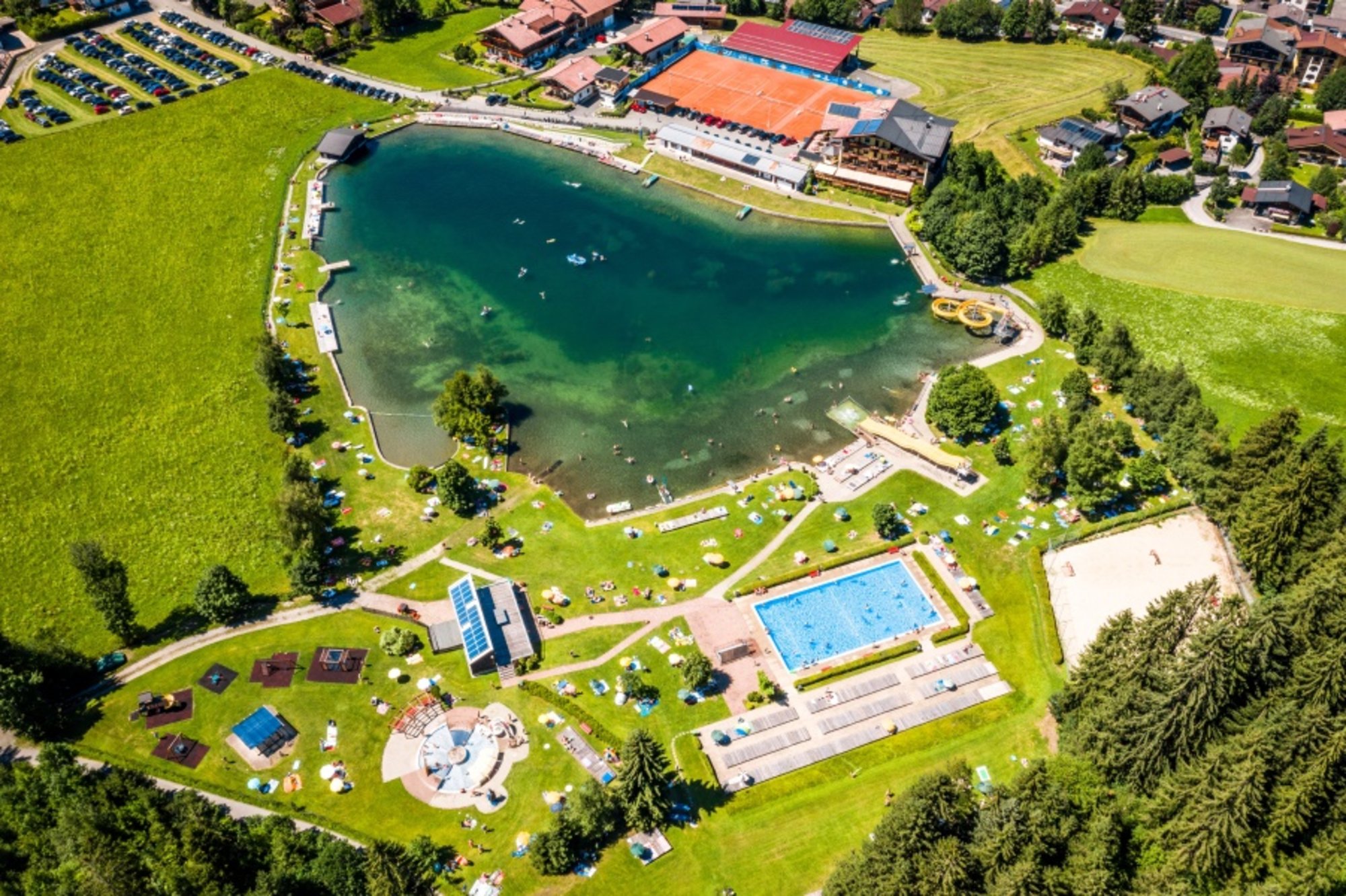 Abkühlung verschafft ein Sprung in den Bergsee. Hier kann man mit den Forellen im glasklaren Wasser um die Wette schwimmen. Mehr braucht man eigentlich nicht, um einen perfekten Urlaub zu machen. Kinder lieben Bergerlebnisse. Ob es sich dabei um Kindertrails, einen aufregenden Niederseilgarten oder um einen Alpencoaster handelt macht keinen Unterschied. Sie werden begeistert sein vom Sommerurlaub in Kirchberg!