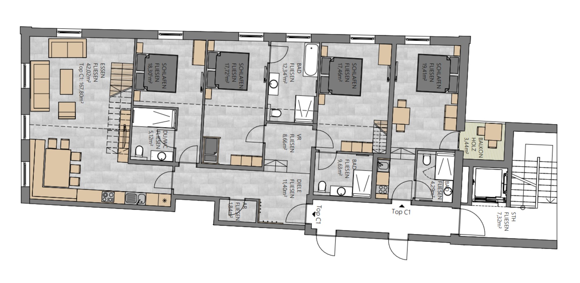 Im Dorfzentrum dieses idyllischen Bergdorfes haben wir ein Penthouse Apartment für Sie im Angebot. Von hier hat man einen atemberaubenden Ausblick auf die umliegenden Bergketten, die Teil des Nationalparks Hohe Tauern sind. Im Ortszentrum von Piesendorf gelegen hat man vom Apartment aus eine ganz wunderschöne Aussicht auf das Dorfzentrum. Das Besondere an dem Penthouse ist die Aufteilung. Zum einen gibt es ein 3-Schlafzimmer Apartment, zum anderen gibt es eine separate Suite für alle, die es etwas privater möchten.