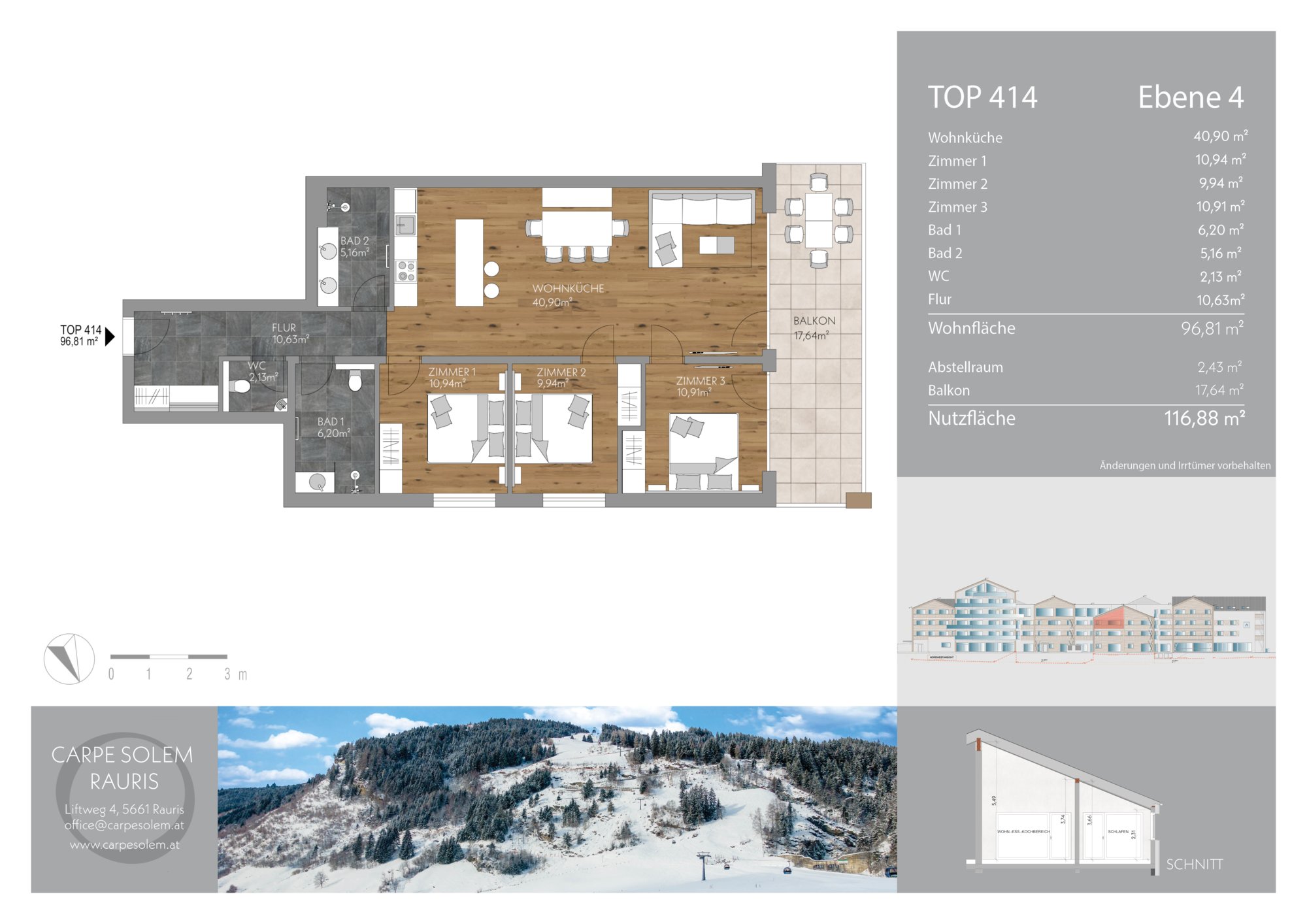 Das Appartement Resort CARPE SOLEM befindet sich auf 950 Meter Seehöhe in der Nationalparkgemeinde Rauris im Salzburger Pinzgau. Dieses einzigartige Resort besticht durch eine sehr gehobene Ausführung und fügt sich wunderbar in die bestehenden Strukturen des Dorfes ein. Direkt an der Skipiste und an der Talstation der Hochalmbahnen gelegen, ist für Ski-in/Ski-out gesorgt! Pistenliebhaber ersparen sich lange Anfahrten mit dem Auto oder Skibus. Man steigt quasi aus dem Skikeller auf die Piste. Neben der ausgezeichneten und einmaligen Lage sorgen Komfort und Ausstattung des Resorts für einen großen Wohlfühlfaktor. Spa, Schwimmbad und ein großzügiger Wellnessbereich lassen keine Wünsche offen. Ein eigenes Restaurant sorgt für eine top Verpflegung. Für einen entspannten Urlaub und eine optimale Auslastung der Appartements ist Österreichs führender Vermieter für Ferienimmobilien, die Alps Resorts verantwortlich. Mit einer Ferienimmobilie im CARPE SOLEM investiert man nicht nur in eine Anlage mit Zukunft und attraktiver Rendite, man erwirbt daneben auch ein wahres Sorglospaket.