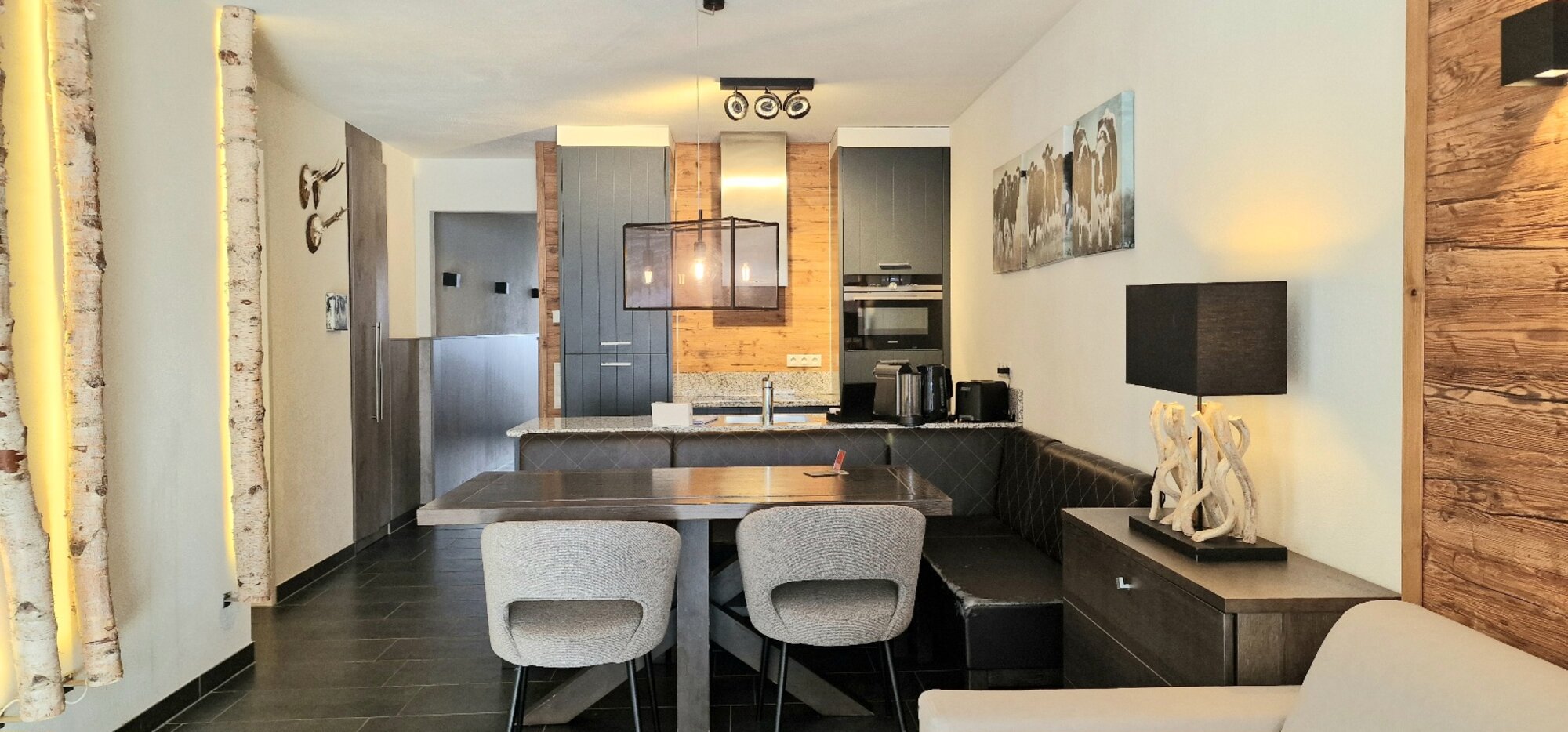 Dieses Apartment steht für Wohnqualität auf hohem Niveau. Der Grundriss ist klar strukturiert und exakt auf die Bedürfnisse anspruchsvoller Urlaubsgäste abgestimmt: zwei komfortable Schlafzimmer, zwei Bäder und ein großzügiger Wohnbereich mit offenem, zeitgemäßem Lebensgefühl. Große Fensterflächen sorgen für viel Tageslicht und schaffen eine freundliche, einladende Atmosphäre. Helligkeit, Weite und Behaglichkeit greifen harmonisch ineinander und machen den Aufenthalt vom ersten Moment an angenehm. Gestalterisch verbindet das Interieur moderne Linien mit traditionellen Akzenten. Hochwertige Naturmaterialien, warme Holzelemente und eine stimmige Ausstattung verleihen den Räumen Authentizität und Stil. Nach einem intensiven Tag am Berg wartet das persönliche Highlight: Wärme, Ruhe, Entspannung. Die Sauna wird zum perfekten Abschluss eines aktiven Urlaubstages – einfacher lässt sich Regeneration kaum genießen.