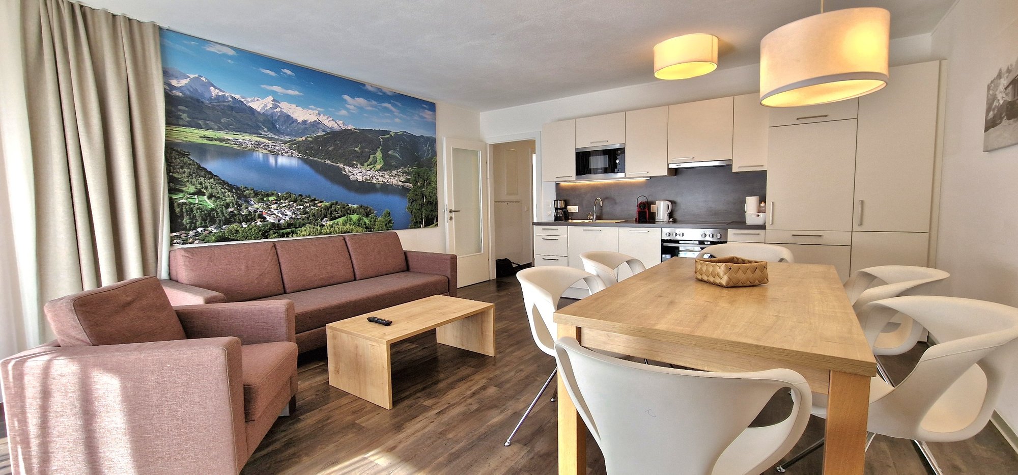 Die Bergstadt Zell am See bietet Ihnen Abwechslung und Vielfalt mit stilvollen Geschäftsstraßen, Lokalen sowie Märkten. Das helle, freundliche Ambiente dieser wunderschön im Zentrum von Zell am See gelegenen Wohnung wird Sie begeistern. Eingebettet im Haus des beliebten AlpenParks Hotel & Apartment Central schafft diese stilvolle Ferienwohnung mit ihrem modernen alpenländischen Design, zwei Schlafzimmern und zwei Bädern, eine Umgebung, in der man gerne einige Tage entspannt und das bunte und aktive Leben am Zeller See genießt.